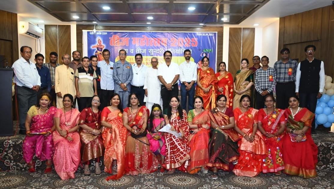 रायपुर. वर्ल्ड ब्राह्मण फेडरेशन छ.ग. एवं सर्व युवा ब्राह्मण परिषद छ.ग. द्वारा विगत वर्षों की भाँति प्रदेश की विप्र महिलाओं, युवतियों को पूर्णतः सांस्कृतिक मंच प्रदान करने “तीज महोत्सव” का आयोजन अग्रवाल भवन, पुरानी बस्ती में किया गया. प्रतिभागियों ने समूह, एकल नृत्य, तीज सुंदरी की प्रस्तुति दी. कार्यक्रम की मुख्य अतिथि महापौर श्रीमती मीनल चौबे एवं विशेष अतिथि राज्य बाल संरक्षण आयोग अध्यक्ष श्रीमती वर्णिका शर्मा रहीं. अतिथियों ने माँ सरस्वती के चित्र पर माल्यार्पण, दीप प्रज्जवलन, वंदना कर कार्यक्रम का शुभारम्भ किया. पदाधिकारियों द्वारा अतिथियों का पुष्प गुच्छ एवं स्मृति चिन्ह प्रदाय कर स्वागत किया गया.