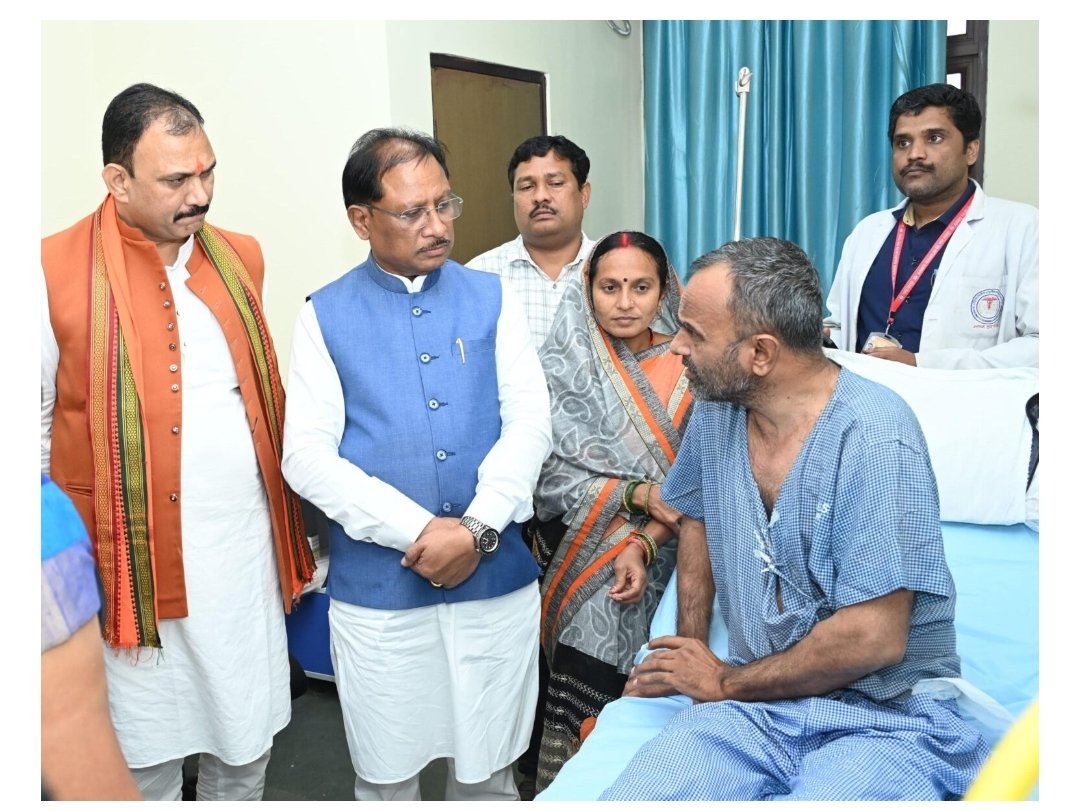 रायपुर । मुख्यमंत्री श्री विष्णुदेव साय ने राजधानी रायपुर के टाटीबंध स्थित एम्स रायपुर में भर्ती सुरजपुर जिले के श्री विशंभर यादव से मुलाकात कर उनका कुशलक्षेम जाना। मुख्यमंत्री श्री साय ने चिकित्सकों से श्री विशंभर यादव के स्वास्थ्य की जानकारी ली और बेहतर इलाज के लिए आवश्यक दिशानिर्देश दिए।