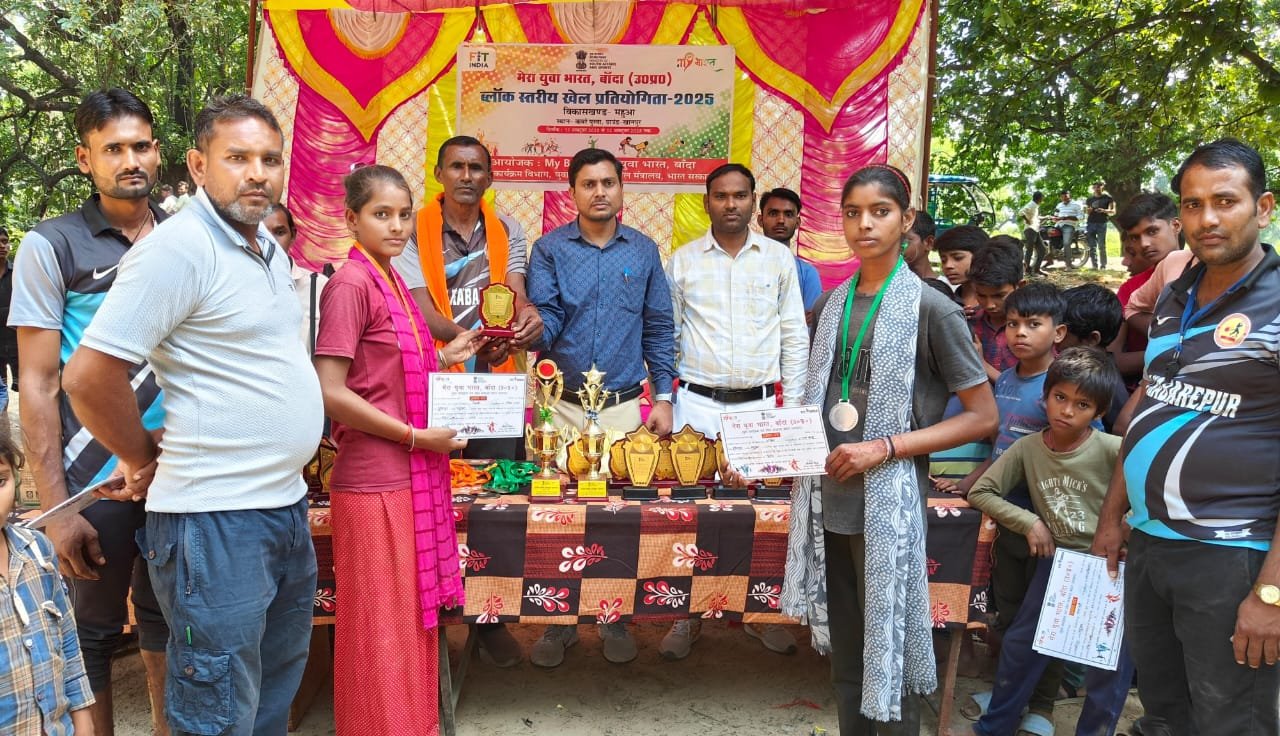 ब्लॉक स्तरीय खेलकूद प्रतियोगिता का आयोजन कबरेपुर ग्राउंड ब्लॉक – महुआ में संपन्न हुआ । इस कार्यक्रम में बैडमिंटन, रेस ,दौड़ ,कबड्डी, वालीबाल इन प्रतियोगिताओं का शुभारंभ श्री हरीशंकर (ग्राम प्रधान) जी ने किया। खेल प्रतियोगिताओं में खानपुर, पैगंबरपुर, हुसैनपुर कला, बंसी, कबरेपुर, नौहाई ग्रामों की टीमों ने भाग लिया विजेता- बैडमिंटन (गर्ल्स) में अर्चना-प्रथम , दौड़ 400 मीटर में प्रथम- राजाबाबू, द्वितीय- अतुल, दौड़ 100 मीटर बालक में प्रथम- नीलू, द्वितीय-उदयभान, दौड़ 100 मीटर बालिका में प्रथम- रोशनी, कबड्डी बालिका सीनियर विजेता टीम – कलावती, रीना, प्रीति ,सीमा, पूनम, नैना (हुसैनपुर कला )तथा वॉलीबॉल बालक सीनियर विजेता (कबरे पुर टीम) में फूलचंद, देशराज, मंगल, लखन, लोकेंद्र, दीपक, ओमप्रकाश, पुष्पेंद्र रहे। इस कार्यक्रम में खेल प्रशिक्षक की भूमिका रामविलास , ओमप्रकाश, लालारामसिंह, ओ पी सिंह,ने सभी खेलो में निर्णायक की भूमिका निभाई। इस कार्यक्रम में 200 लोग उपस्थित रहे। कार्यक्रम का संचालन राम लखन जी ने किया। ग्राम प्रधान श्री हरीशंकर जी मुख्य अतिथि के रूप में एवं विशिष्ट अतिथि में आशाराम क्षेत्र पंचायत प्रतिनिधि एवं श्री भैया लाल, अनिल कुमार, जगमोहन सिंह जी उपस्थित रहे। तथा मेरा युवा भारत,बांदा युवा कार्यक्रम एवं खेल मंत्रालय,भारत सरकार के द्वारा सभी विजेताओं को प्रमाण पत्र एवं ट्रॉफी, मैडल देखकर सम्मानित किया गया। कार्यक्रम समापन में मेरा युवा भारत,बांदा के एमटीएस रवि अवस्थी, युवा मंडल अध्यक्ष धनीराम, रामकेश, तुलसी दास, हर्ष ने सभी का आभार व्यक्त किया।