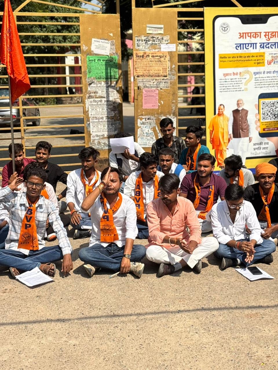 इन सभी मुद्दों की जल्द से जल्द जाँच कर उचित कार्यवाही की जाए । अन्यथा विद्यार्थी परिषद क्रमिक अनशन के लिए बाध्य होगा । विद्यार्थी परिषद के जिला सह संयोजक कार्तिकेय गुप्ता ने कहा कि अगर छात्रों से शुक्ल के माध्यम से वसूले गए पैसों का छात्रों के लिए ही उपयोग किया जाए ना कि घोटाला किया जाए अन्यथा की स्थिति में बड़े आंदोलन एवं प्रदर्शन के साथ क्रमिक अनशन को बाध्य होंगे । इस मौके में विभाग संगठन मंत्री शिवम पांडेय, किरात यादव , अर्पित द्विवेदी , दिलीप यादव , सुमित यादव , अभिलाष , ज्ञानदत्त तिवारी, रोहित, सूरज यादव , ऋषभ सिंह गौतम , रमाकांत , हर्षित , ओमप्रकाश गुप्ता , सुनील , हर्षित कुशवाहा , सहित सैकड़ो कार्यकर्ता उपस्थित रहे ।