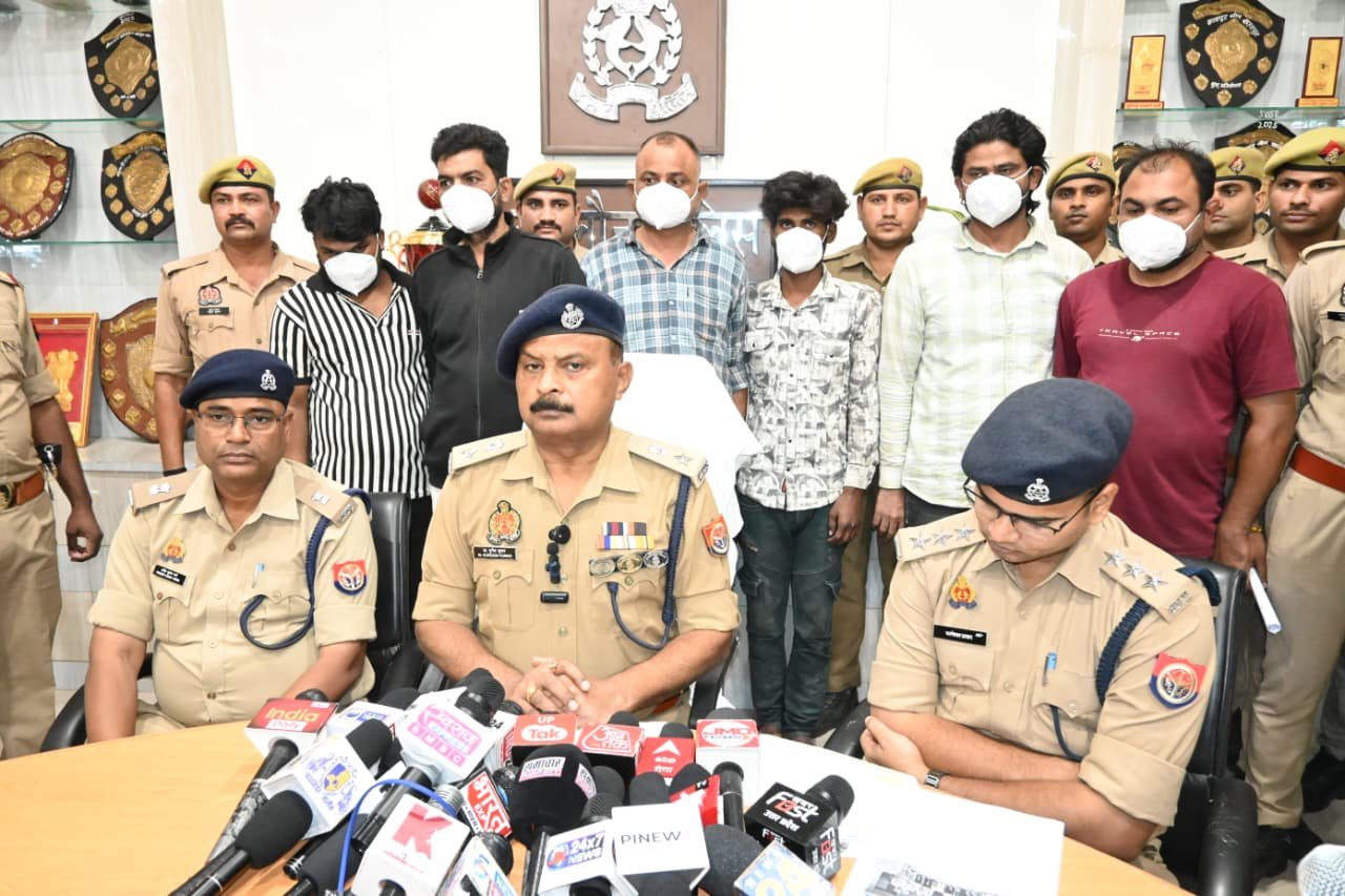 उर ई। जालौन कोच कोतवाल अजीत सिंह और उनकी टीम ने पुलिस उपाधीक्षक कोच परमेश्वरी प्रसाद के नेतृत्व मे 06 अभियुक्तो को 02 अदद अवैध तमंचे 01 कारतूस व अर्टिका कार के साथ डकैती की योजना बनाते गिरफ्तार किया! उक्त सम्बन्ध मे प्रेस वार्ता के दौरान पुलिस अधीक्षक जालौन डा दुर्गेश कुमार ने विस्तृत जानकारी इस प्रकार दी! इस दौरान अपर पुलिस अधीक्षक प्रदीप कुमार भी उपस्थित रहे!