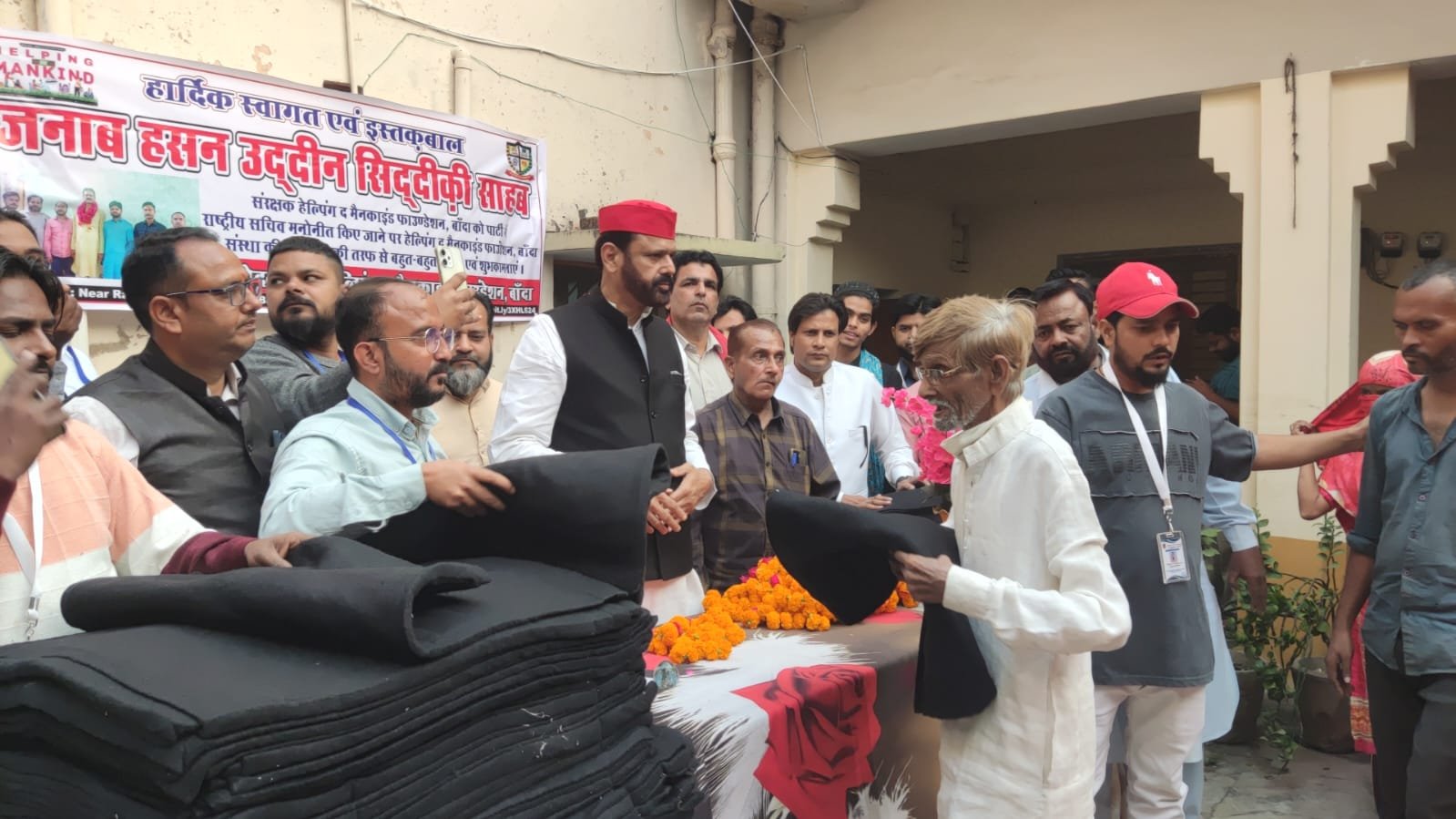 मौसम में अचानक बदलाव एवं बढ़ती ठंड को देखते हुए हेल्पिंग द मैनकाइंड फाउंडेशन बांदा संस्था की टीम की ओर से अलीगंज स्थित संस्था के कार्यालय से सीज़न का पहला कंबल वितरण किया गया जिसमें लगभग एक सैकड़ा ज़रूरत मंद परिवारों एवं बच्चों को कंबल उपलब्ध कराए गए जिसको पाकर ज़रूरत मंद परिवारों एवं बुजुर्गों, महिलाओं के चेहरों में खुशी देखी गई ठंड की शुरुआत में ही कंबल मिलने से लाभार्थियों का कहना था कि संस्थाएं ज्यादा ठंड बढ़ने का इंतजार करती है और पहले कंबल नहीं बाटती है हेल्पिंग द मैनकाइंड फाउंडेशन ग्रुप का बहुत आभार जो उन्होंने ठंड की शुरुआत में ही ज़रूरत मंद परिवारों का ख्याल रखा और कंबल उपलब्ध कराएं इस अवसर पर आयोजन समिति हेल्पिंग द मैनकाइंड फाउंडेशन बांदा संस्था के संरक्षक हसन उद्दीन सिद्दीकी,संस्था के अध्यक्ष नदीम उल्लाह खान,वरिष्ठ सहयोगी मीडिया प्रभारी सुनील सक्सेना,वरिष्ठ सहयोगी नज़रे आलम, उपाध्यक्ष जावेद खान,उपाध्यक्ष मोहम्मद फरहान, कलीम उल्ला खान,सचिव उमर अली,उपसचिव आसिफ मसूदी, उपसचिव गफ्फार खान, संगठन मंत्री शेख रिज़वान,कोषाध्यक्ष अनस उल्लाह खान एड,शाखा प्रमुख खाईपार अली, शाखा प्रमुख भरत हार्डवेयर,शाखा प्रमुख मर्दननाका मोहम्मद नफीस,वरिष्ठ सहयोगी में सैयद आबिद अली,आरिफ खान, शिफात खान,हनी खान,विक्की खान,सनी,इमाम रेहान,शाखा प्रमुख शादाब हुसैन,सूचना मंत्री इरफान सभासद,कानूनी सलाहकार समीर उलहक़ एड.,जुगनू पूर्व सभासद, उरूज़,शाखा प्रमुख हसीब,कार्यालय प्रभारी इमरान,इस्लामुद्दीन,ब्रज बिहारी आदि ने आए हुए मेहमानों और ज़रूरत मंद परिवारों का आभार व्यक्त किया गया। कार्यक्रम के अंत में संस्था के सभी पदाधिकारियों ने संस्था के संरक्षक हसन उद्दीन सिद्दीकी साहब का जोरदार स्वागत किया। टीम द्वारा अवगत कराया गया कि आगे भी सर्दी की रातों में ज़रूरत मंद लोगों को ठंड से बचाने के लिए संस्था के लोग सड़क किनारे सो रहे ज़रूरत मंदो में कंबल उपलब्ध कराने का कार्य हर साल की तरह इस साल भी करती रहेगी।