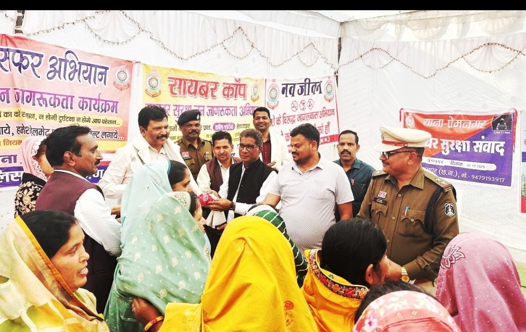 प्रेमनगर:-। जिला पुलिस प्रशासन द्वारा जिले भर में बढ़ती दुर्घटनाओं और ठगी को लेकर एक्शन मोड में नजर आ रही है। सूरजपुर एसपी प्रशांत कुमार ठाकुर के निर्देशानुसार, प्रेमनगर एसडीओपी नारेन्द्र पुजारी के मार्गदर्शन, प्रेमनगर थाना प्रभारी विराट बीसी के नेतृत्व व जिला पंचायत सदस्य नयन विजय सिरदार, नगर पंचायत अध्यक्ष सुखमनिया जगते, जनपद पंचायत अध्यक्ष फूलेश्वर सिरदार, उपाध्यक्ष पुनिया राजेश्वर रजवाड़े, वीरेंद्र जायसवाल, भाजपा मंडल अध्यक्ष मिथिला बंजारा, तुलसी यादव, विजय सिरदार, महेंद्र यादव महामंत्री, सरपंच संघ अध्यक्ष प्रभुनारायण श्याम, पूर्णा जायसवाल, प्राचार्य रामबरन सिंह, व्याख्याता कृष्ण कुमार ध्रुव, पूरन सिंह, रमेश साहू व अन्य जनप्रतिनिधियों व बालक विद्यालय के छात्रों की उपस्थिति में प्रेमनगर थाना परिसर में आम लोगों से जुड़ी अनेक मुद्दों को लेकर जागरूकता अभियान कार्यक्रम का आयोजन किया गया।