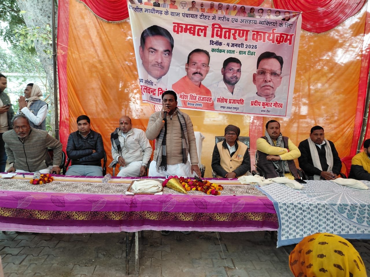 कार्यक्रम को संबोधित करते हुए विधायक मूलचंद्र सिंह निरंजन ने कहा कि गरीब, कमजोर और अंतिम पंक्ति में खड़े व्यक्ति तक सरकार की योजनाओं का लाभ पहुंचाना ही डबल इंजन की सरकार का मुख्य उद्देश्य है। उन्होंने कहा कि केंद्र एवं प्रदेश सरकार “सबका साथ, सबका विकास, सबका विश्वास और सबका प्रयास” के मंत्र पर कार्य कर रही है तथा राम राज्य की परिकल्पना को साकार करने के लिए निरंतर प्रयासरत है। विधायक ने कहा कि ठंड के मौसम में कंबल वितरण जैसे कार्यक्रम जरूरतमंदों के लिए संजीवनी का कार्य करते हैं और जनप्रतिनिधियों का यह सामाजिक दायित्व है कि वे हर परिस्थिति में जनता के साथ खड़े रहें।