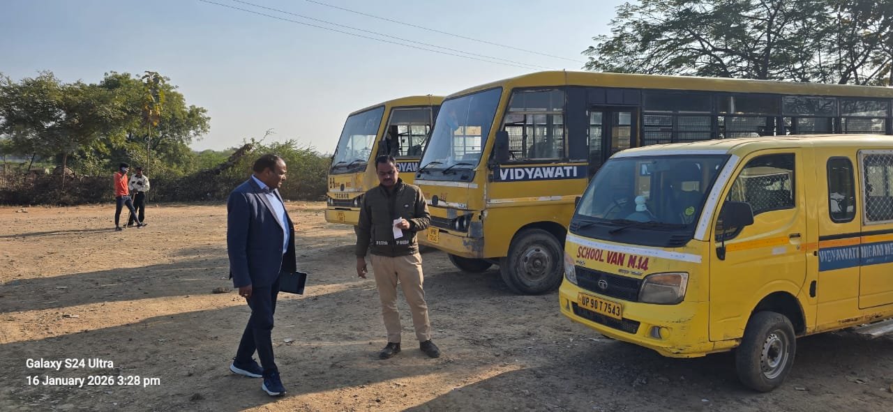 बांदा। सड़क दुर्घटनाओं पर कमी लगाये जाने के उद्देश्य से मुख्य सचिव, उ०प्र० शासन के पत्र संख्या 3033/तीस-3-2025 दिनांक 31.12.2025 द्वारा दिनांक 01.01.2026 से 31.01.2026 तक राष्ट्रीय सड़क सुरक्षा माह आयोजित किये जाने के निर्देश के क्रम में आज दिनाक 16.01.2026 को राष्ट्रीय सड़क सुरक्षा माह के सोलहवें दिवस श्री श्याम लाल, सहायक सम्भागीय परिवहन अधिकारी, बाँदा एवं श्री वीरेन्द्र नाथ राजभर, यात्री / मालकर अधिकारी, बाँदा द्वारा अनफिट स्कूली वाहनों की चेकिंग हेतु विशेष अभियान के अन्तर्गत विद्यावती निगम मेमोरियल स्कूल व सेंट जेवियर्स स्कूल में जाकर स्कूली वाहनों की फिटनेस को चेक किया गया, सभी स्कूली बसें फिट पायी गयी।