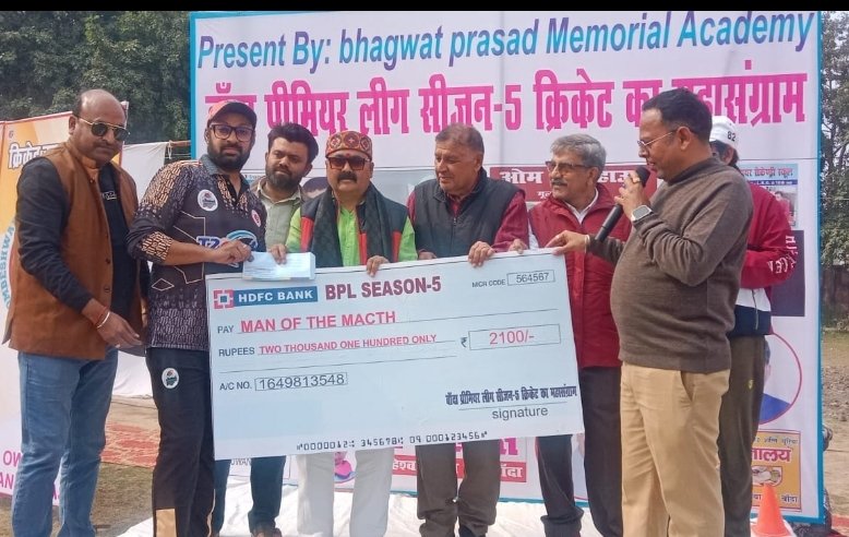 77 वें गणतंत्र दिवस के अवसर पर राइफल खेल मैदान पर खानकाह इंटर कॉलेज, बांदा एवं मौलाना सलीम जाफरी, मौदहा, हमीरपुर के बीच खेले गए हाकी मैच में बांदा ने हमीरपुर को 3-2 से हराया मैच का उदघाटन अशोक सिंह परिहार, विभाग सहप्रमुख एबीवीपी, दिनेश कुमार, जिला विद्यालय निरीक्षक, बांदा, पूर्व हॉकी खिलाड़ी मुन्ने अहमद मगरबी, वरिष्ठ पत्रकार सुनील सक्सेना एवं मेजर मिथिलेश कुमार पांडे ,प्रधानाचार्य आदर्श बजरंग इंटर कॉलेज ने खिलाड़ियों से परिचय प्राप्त किया । बांदा की तरफ से ताबिश, अनुज एवं कृष्ण ने गोल किया वहीं हमीरपुर की तरफ से आरुष एवं गुलफाम ने गोल किए इस अवसर पर विजेता एवं उपविजेता टीम के सभी खिलाड़ियों को मेडल पहनाकर सम्मानित किया गया एवं उनके उज्जवल भविष्य की कामना की गई मैच के अंपायर सोमदत्त एवं देवशरण रहे निर्णायक की भूमिका अशोक कुमार व्यायाम शिक्षक हिरा मॉडल स्कूल ने निभाई संयोजक शाहिद वली खान ने आए हुए मेहमानों एवं सभी खेल प्रेमियों का शुक्रिया अदा किया संचालन मोहम्मद बाकर ने किया इस अवसर पर नेशनल कबड्डी खिलाड़ी तौफीक अहमद, नवीन पांडे, श्लोक द्विवेदी, समाजसेवी खिलाड़ी सुनील सक्सेना,पंकज पटेल, जावेद खान, करीम बख्श, शब्बीर खान, रईस अहमद, अदनान अहमद, व्यायाम शिक्षक रमेश सिंह, ज्ञानचंद, रामदेव सहित सैकड़ो की संख्या में खेल प्रेमी उपस्थित रहे कार्यक्रम को सकुशल संपन्न कराने में एबीवीपी का महत्वपूर्ण सहयोग रहा