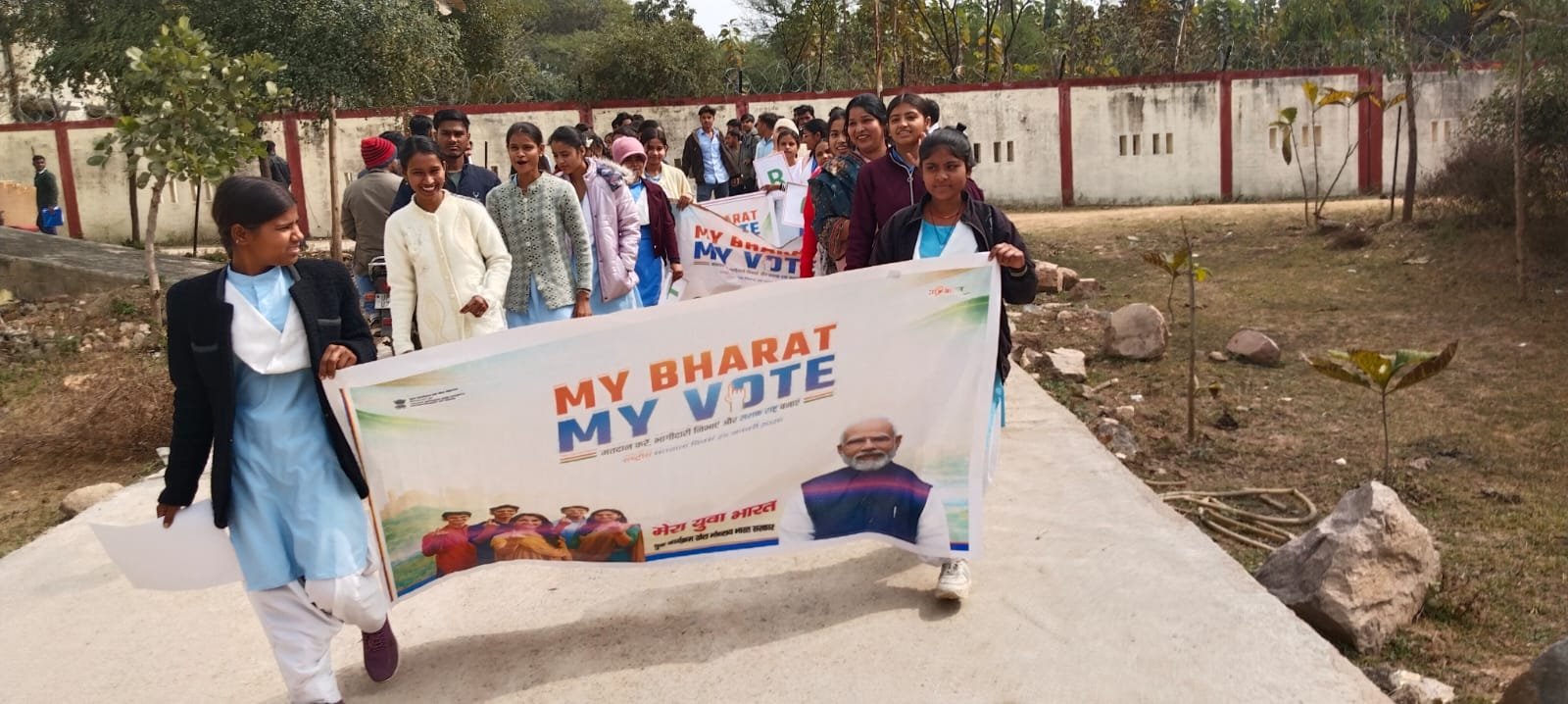 मेरा युवा भारत महोबा , युवा कार्यक्रम खेल मंत्रालय के तत्वाधान में राष्ट्रीय मतदाता कार्यक्रम में पोस्टर प्रतियोगिता एवं पदयात्रा का आयोजन राजकीय आई. टी .आई. महोबा में किया गया जिसमें युवाओं द्वारा मतदाता जागरूकता के नारे लगा कर सभी को वोट देने के लिए प्रेरित किया गया तथा 18 वर्ष की आयु पूर्ण कर चुके युवाओं को मतदाता सूची में अपना नाम सम्मिलित कराने के लिए प्रोत्साहित किया गया| कार्यक्रम का शुभारंभ प्रधानाचार्य श्री अभिषेक मिश्रा जी ने मां सरस्वती की प्रतिमा में पुष्पांजलि कर किया गया जहां पोस्टर प्रतियोगिता में सुनील प्रथम, सुनीता द्वितीय और आलोक सिंह तृतीय स्थान पर रहे तथा प्रथम बार मतदान कर रहे युवाओं को प्रमाण पत्र देकर सम्मानित किया गया तथा कार्यक्रम समाप्ति पर राष्ट्रीय मतदाता शपथ दिला कर कार्यक्रम का समापन किया। कार्यक्रम का थीम “माय भारत, माय वोट रहा”| कार्यक्रम में मेरा युवा भारत महोबा से नवल जी , रवि अवस्थी , विद्यालय परिवार से संजय अग्रवाल, ऊषा वर्मा शैलेन्द्र साहू, अभिषेक पाल ,सुनाली सिंह उपस्थित रहे।।