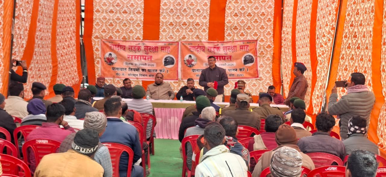 सड़क दुर्घटनाओ पर कमी लगाये जाने के उद्देश्य से मुख्य सचिव, उ०प्र० शासन के निर्देशानुसार दिनांक 01.01.2026 से 31.01.2026 तक आयोजित किये जा रहे राष्ट्रीय सड़क सुरक्षा माह के अन्तर्गत आज दिनांक 31.01.2026 को राष्ट्रीय सड़क सुरक्षा माह के अन्तिम दिवस पर प्राइवेट बस स्टैण्ड, बाबूलाल चौराहा बाँदा में सड़क सुरक्षा माह का समापन कार्यक्रम आयोजित किया गया।