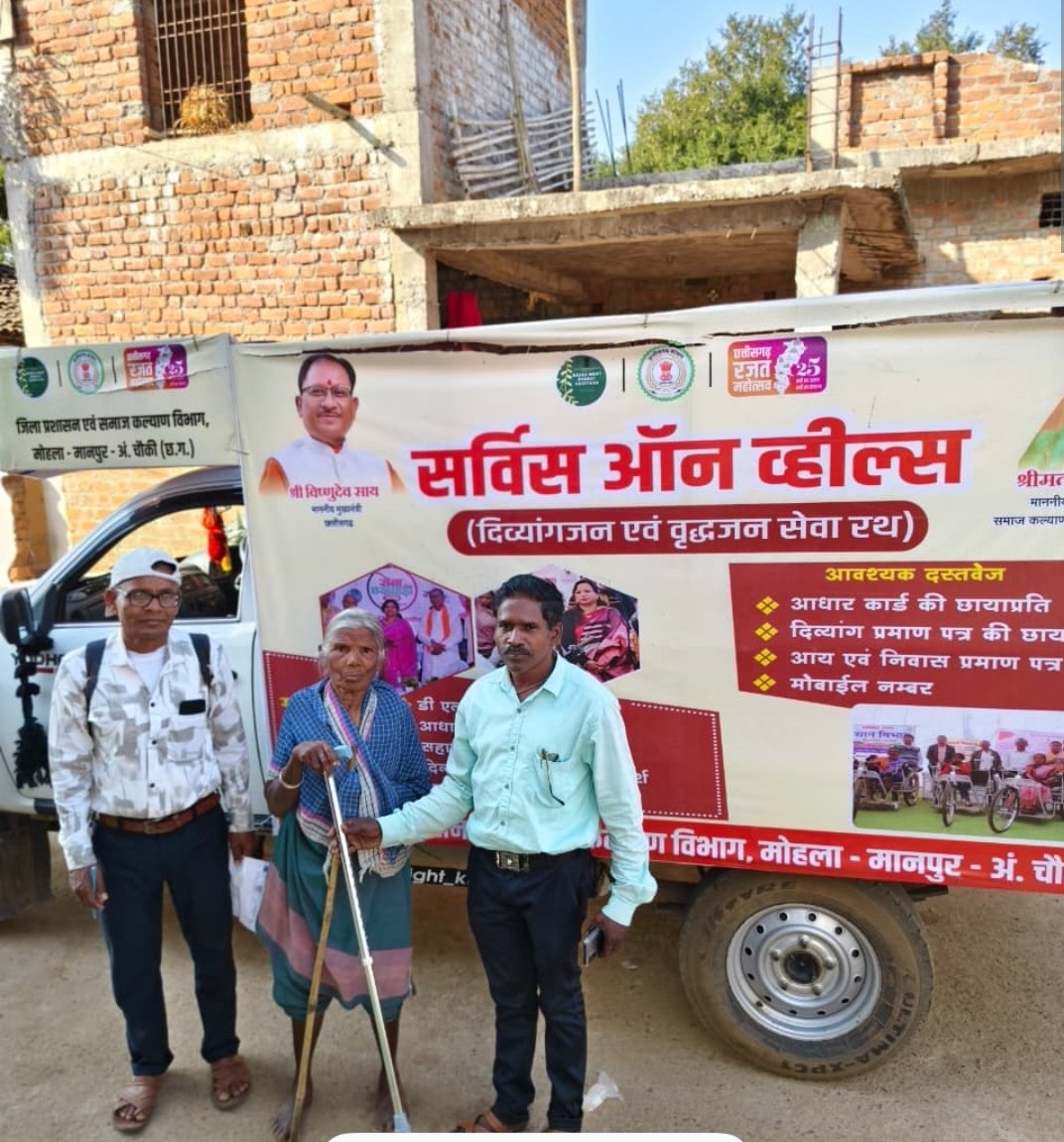 मोहला मानपुरकलेक्टर श्रीमती तुलिका प्रजापति के निर्देशन में जिले के दिव्यांगजनों एवं वृद्धजनों को घर-पहुंच शासकीय सेवाएँ उपलब्ध कराने के उद्देश्य से जिला प्रशासन एवं समाज कल्याण विभाग द्वारा “सर्विस ऑन व्हील्स–दिव्यांगजन एवं वृद्धजन सेवा रथ” अभियान संचालित किया जा रहा है। अभियान के तहत विभिन्न विकासखंडों में क्लस्टर स्तरीय शिविर आयोजित कर पात्र हितग्राहियों को एक ही मंच पर विभिन्न विभागों की योजनाओं का लाभ प्रदान किया जा रहा है।