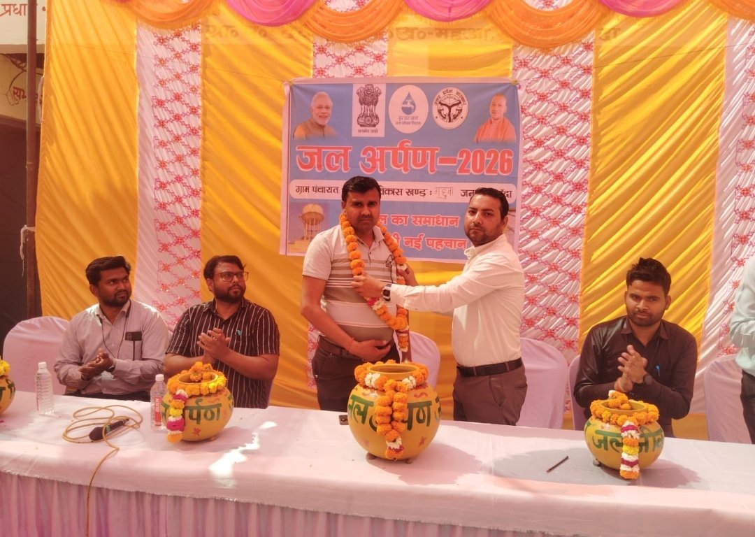 बांदा–आज दिनांक 19.03.2026 को विकास खण्ड महुवा के ग्राम पंचायत देवरार में जल अर्पण 2026 का कार्यक्रम उo प्रo जल निगम ग्रामीण के अधिकारियों में प्रद्युम्न कुमार सहायक अभियन्ता,अमित कुमार शुक्ला जूनियर इंजीनियर,सुशील सिंह राजपूत ग्राम प्रधान व ग्रामवासियों द्वारा ग्राम देवरार पंचायत भवन के प्रांगण में मनाया गया। कार्यक्रम में ग्रामप्रधान तथा ग्रामवासियों का माल्यार्पण कर समारोह का कार्य प्रारम्भ कर जल अर्पण कार्यक्रम का शुभारम्भ किया गया। कार्यक्रम के दौरान योजना के सहायक अभियंता प्रद्युम्न कुमार द्वारा खटान ग्राम समूह पेयजल योजना के अन्तर्गत कराये गये कार्यों एवं जलअर्पण का विस्तृत विवरण एवं यमुना जल को शुद्ध एवं क्लोरीन युक्त कर ग्रामवासियो तक पहुँचाने की प्रक्रिया से अवगत कराया गया एवं टोटी के माध्यम से ही पेयजल उपयोग एवं जल संचयन हेतु जागरूक किया। इस कार्यक्रम में लोगों को जल के उचित प्रयोग व जल संरक्षण हेतु जल शपथ भी दिलायी गयी। जल निगम के अधिकारियों द्वारा बताया गया कि ग्राम के समस्त घरों में 337 गृह जल संयोजन उपलब्ध कराकर पेयजलापूर्ति दैनिक रूप से संचालित होने के पश्चात् ग्राम प्रधान व ग्राम पेयजल समिति के सदस्यों द्वारा प्रमाणित भी किया गया एवं ग्राम पंचायत को अपने मार्गदर्शन में ग्राम में पेयजल संचालन, रखरखाव, जल संरक्षण हेतु अर्पित किया जाता है। उक्त कार्यो में कार्यदायी संस्था मैसर्स एल0 एंड टी0 द्वारा ट्रायल एंड रन उपरांत 10 वर्ष के अनुरक्षण एवं संचालन कार्यों में सहयोग प्रदान किया जायेगा। कार्यक्रम के अन्त में ग्रामप्रधानसुशील सिंह राजपूत द्वारा ग्राम में शुद्ध एवं सुचारू पेयजल आपूर्ति हेतु जल जीवन मिशन के कार्यो में कार्यरत जल निगम तथा एल0 एंड टी0 के इंजीनियरों, आई0 एस0 ए0 यूनॉपोप्स, टीपीआई के विराट सिंह को धन्यवाद भी ज्ञापित किया।