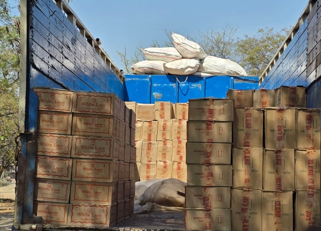 म.प्र. शासन के आदेशानुसार प्रदेश मे चल रहे नशा मुक्ति अभियान तहत विनोद मीणा पुलिस अधीक्षक मंदसौर द्वारा दिये गये निर्देशो के तारतम्य में टी एस बघेल अति. पुलिस अधीक्षक मंदसौर एवं कीर्ति बघेल एसडीओपी मंदसौर के मार्गदर्शन में थाना प्रभारी नाहरगढ निरीक्षक वरुण तिवारी व उनकी टीम द्वारा एक ट्रक मे से 550 पेटी अवैध अंग्रेजी शराब जप्त की घटना दिनांक 19.03.2026 को थाना नाहरगढ पर पदस्थ सउनि कन्हैयालाल यादव को द्वारा मुखबिर सूचना पर कार्यवाही करते हुए नापाखेडा बिल्लोद रोड पर मल्हारगढ तरफ से सीतामउ 8 लेन जाने के लिये ट्रक क्रमांक GJ-36-V-4253 में अवैध शराब ले जायी जा रही है जिसे फोर्स की मदद से नाकाबंदी कर पकड कर तलाशी लेते मक्का के बोरो के आड में ट्रक मे 550 अंग्रेजी अवैध शराब की पेटीया भरी होना पाई गई बाद शराब को जप्त कर धारा 34(2) आबकारी एक्ट में अपराध पंजीबध्द कर विवेचना में लिया गया ।