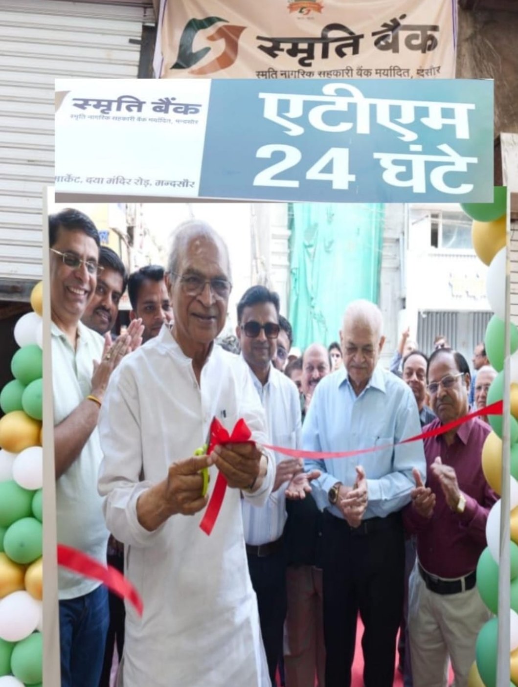 मन्दसौर /नाहरगढ(तुलसीराम राठौर)–स्मृति नागरिक सहकारी बैंक की मुख्य शाखा में नव-सज्जित एटीएम का शुभारंभ बैंक के संस्थापक अध्यक्ष नरेन्द्र नाहटा द्वारा उनके जन्मदिन के अवसर पर फीता काटकर किया गया। यह एटीएम गौशाला मार्केट स्थित बैंक की नई मुख्य शाखा के नीचे भू-तल पर स्थापित किया गया है, जिससे अब ग्राहकों को एटीएम उपयोग के लिए प्रथम तल पर नहीं जाना पड़ेगा। विशेष रूप से वरिष्ठ नागरिकों के लिए यह सुविधा काफी लाभकारी साबित होगी।