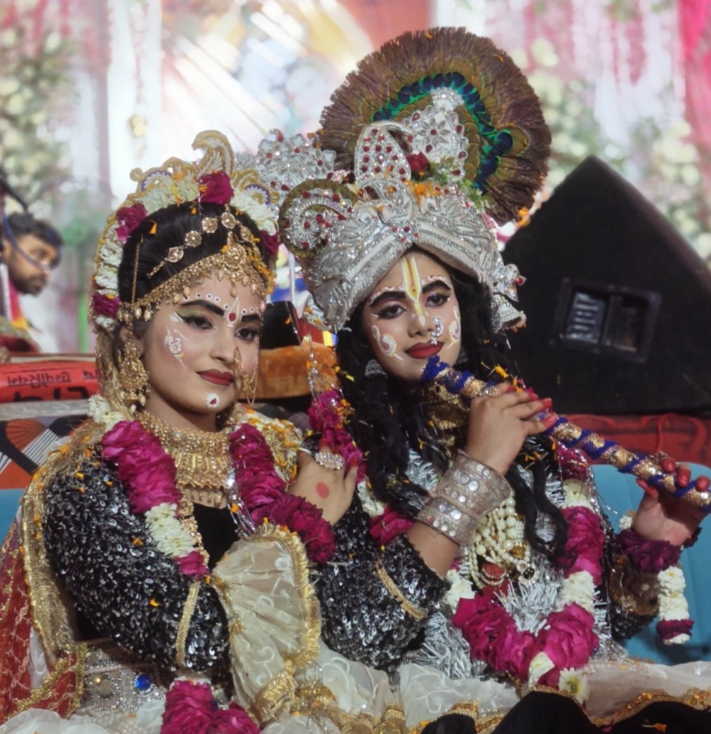 विवाह समारोह के दौरान कथा व्यास देवी राधिकाजी के मधुर प्रवचनों और संगीतमय प्रस्तुति ने श्रद्धालुओं को मंत्रमुग्ध कर दिया। जैसे ही विवाह की रस्में प्रारंभ हुईं, पूरा पंडाल “राधे-राधे” और “जय श्रीकृष्ण” के जयकारों से गूंज उठा। श्रद्धालु इस दिव्य मिलन के साक्षी बनकर भाव-विभोर हो गए।