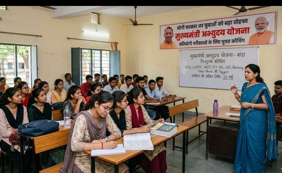 *बांदा: 29 अप्रैल-* प्रदेश के मेधावी युवाओं को सशक्त बनाने के मिशन में जुटे मुख्यमंत्री योगी आदित्यनाथ ने बांदा के छात्रों को एक बड़ा तोहफा दिया है। मुख्यमंत्री अभ्युदय योजना के तहत अब बांदा के मध्यम और गरीब वर्ग के छात्र-छात्राएं भी अपने सपनों को उड़ान दे सकेंगे। इस योजना के माध्यम से जिले में UPSC, UPPSC, NEET, IIT-JEE, SSC, रेलवे और पुलिस भर्ती जैसी बड़ी प्रतियोगी परीक्षाओं की निःशुल्क कोचिंग प्रदान की जा रही है। बांदा शहर के राजकीय महिला महाविद्यालय में वर्ष 2021 से संचालित यह कोचिंग सेंटर जिले के छात्र छात्राओं के लिए वरदान साबित हो रहा है। मुख्यमंत्री का स्पष्ट विजन है कि आर्थिक तंगी किसी भी प्रतिभाशाली छात्र के भविष्य की बाधा न बने। इसीलिए कोचिंग का पूरा खर्च सरकार खुद उठा रही है।